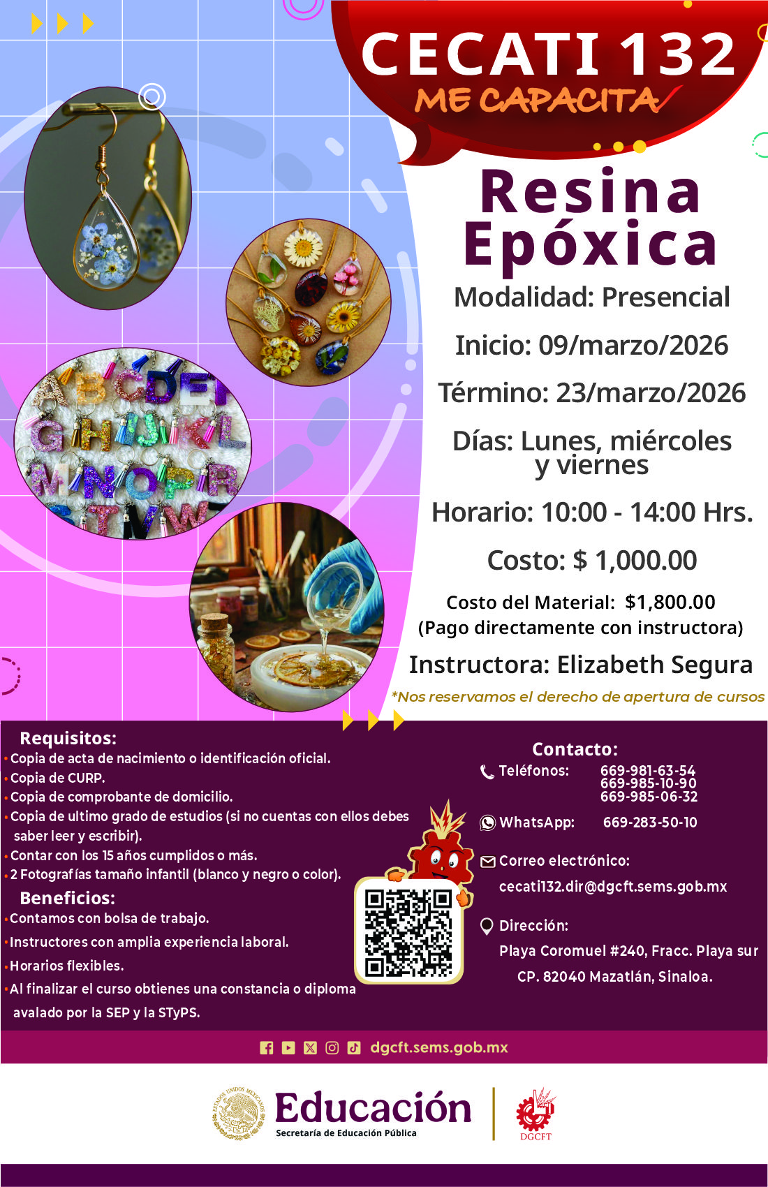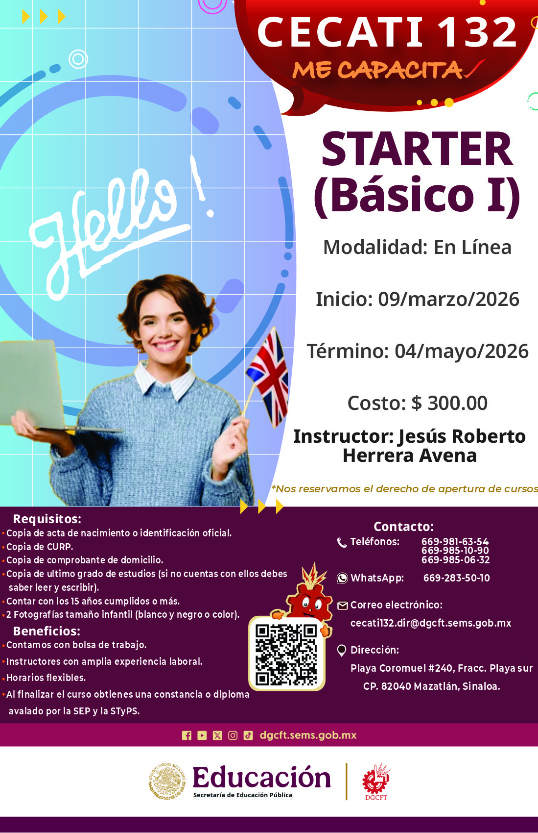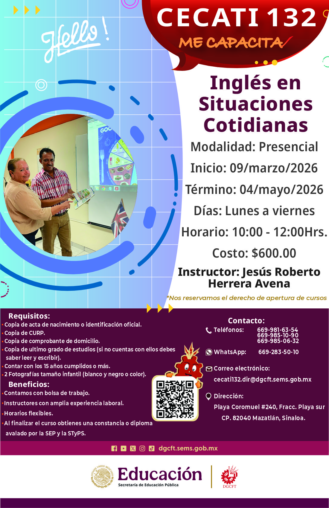 MODALIDAD: PRESENCIAL LUNES, MIERCOLES Y VIERNES 09:00 A 12:00 HRS.